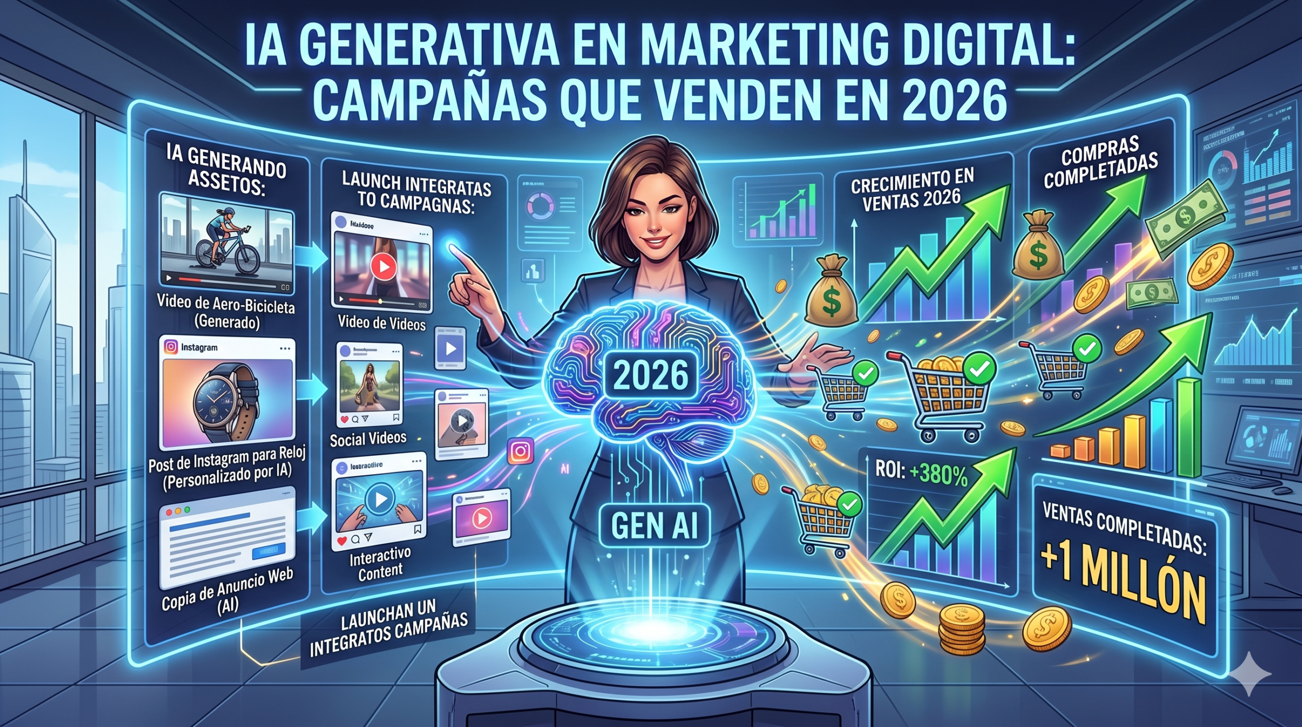 Descubre cómo la IA generativa en marketing digital 2026 te permite crear campañas que venden. Aumenta tus conversiones un 25% con...